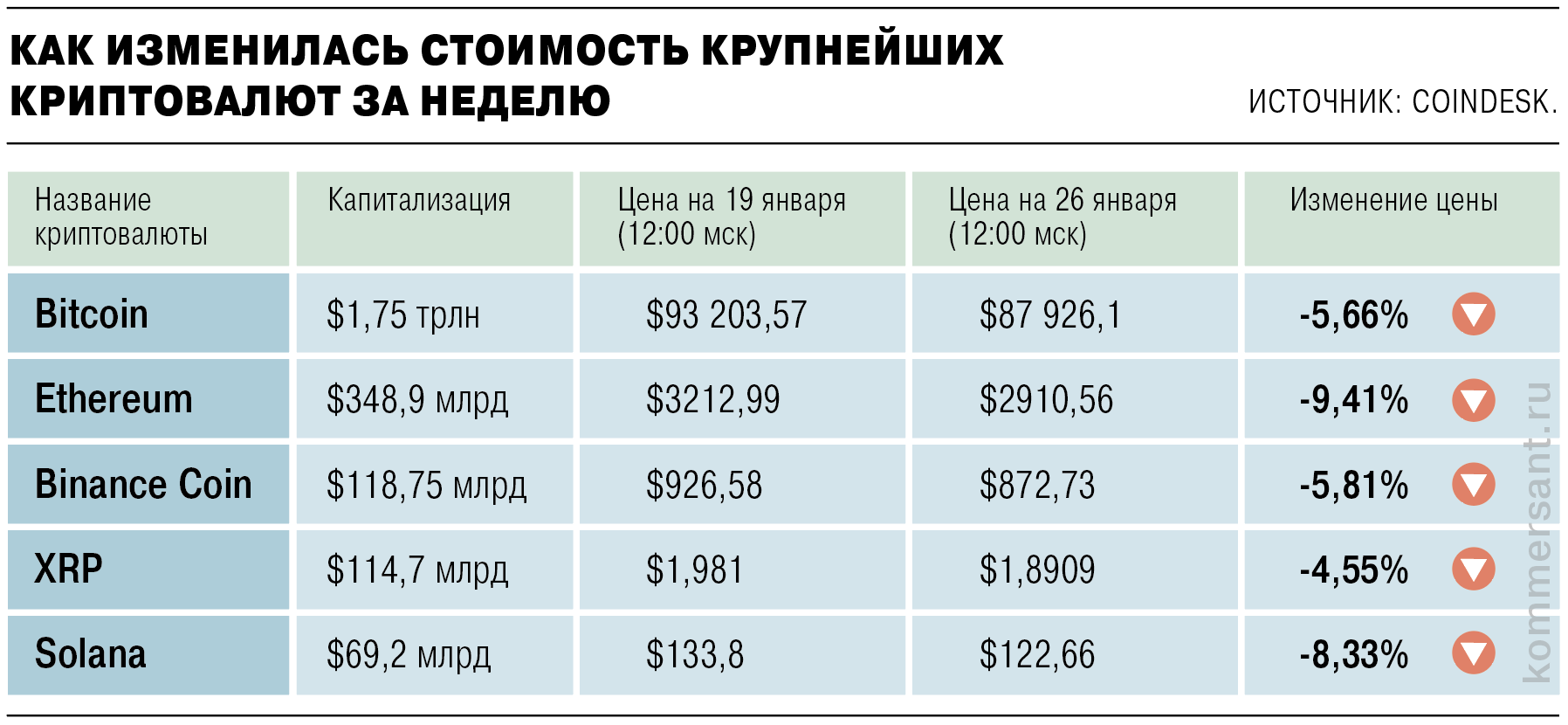Особенно тяжело неделя прошла для Ethereum: уровень доверия к нему среди участников сообщества продолжает падать, за семь дней (с 19 по 26 января) стоимость упала больше чем на 9%.